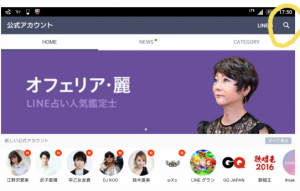 「公式アカウント」に移動したら右上の検索「🔍」を押します。